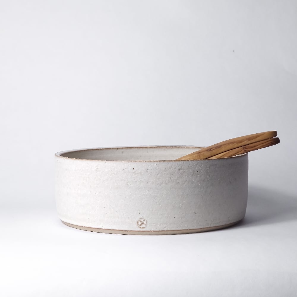 Stoneware salad bowl for 2-4 people. Available in white matte glaze only*
