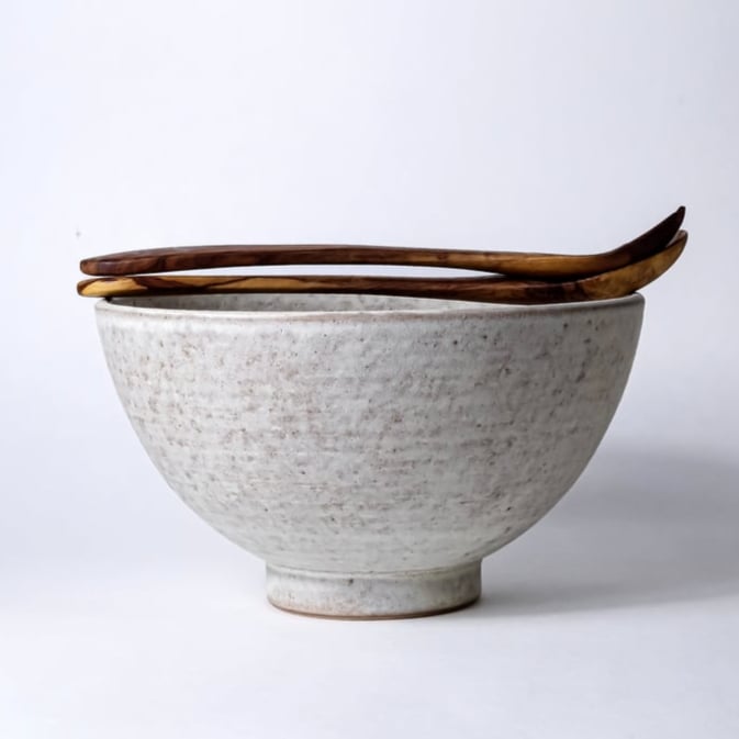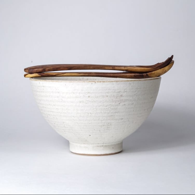 Stoneware salad bowl. Perfect for salads made for two. Available in white or natural matte glaze.*