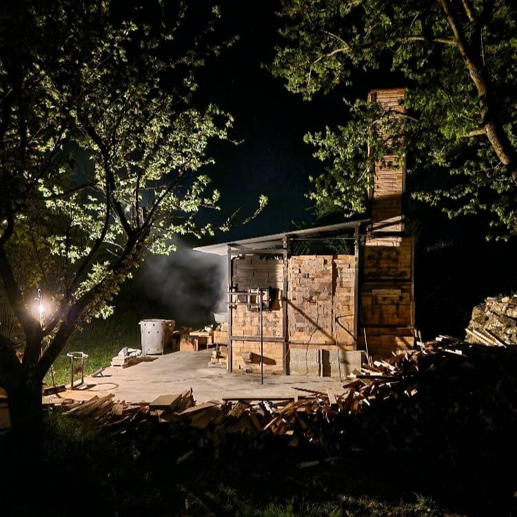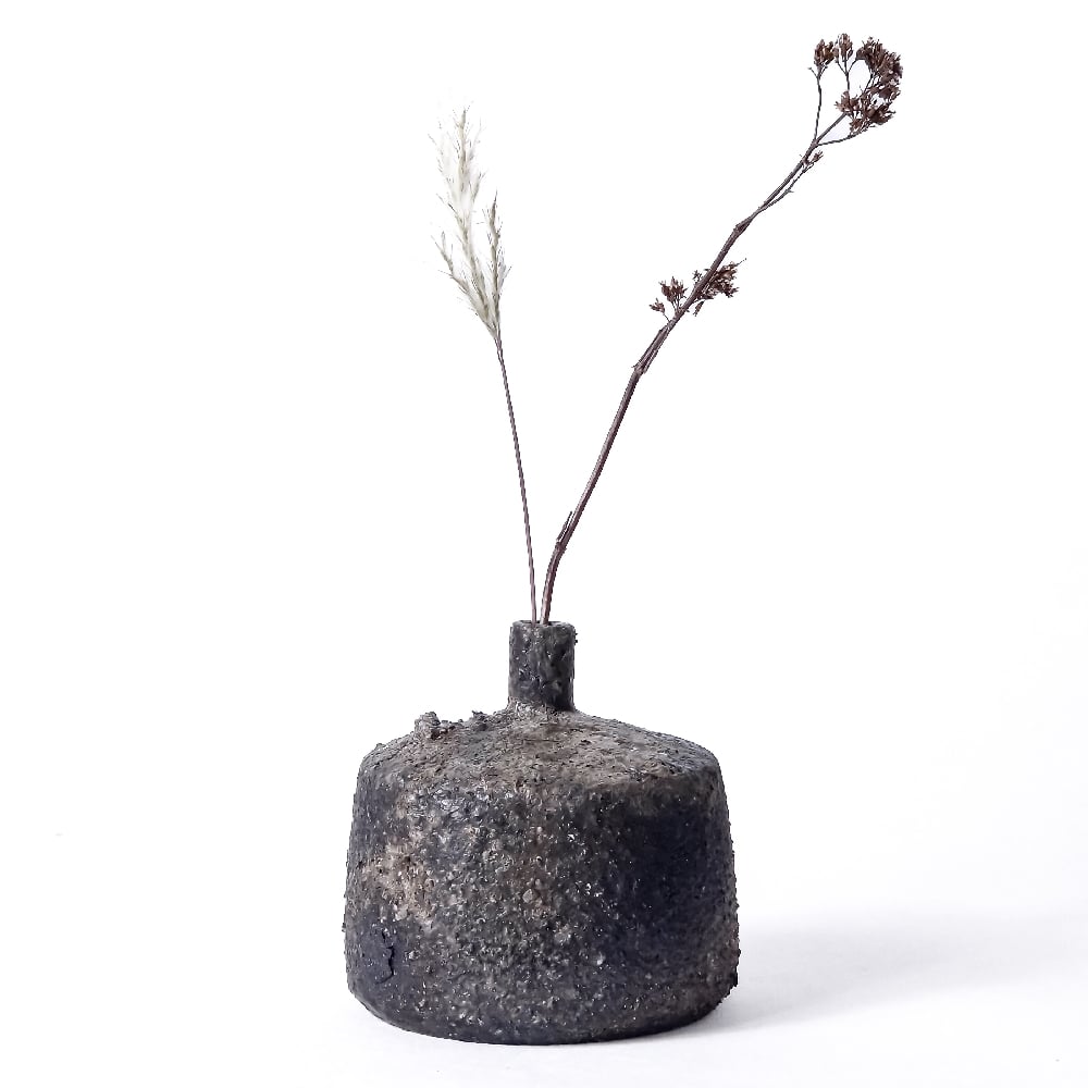Soliflore en grès, émaillé naturellement par les cendres du bois lors d'une cuisson au four à bois. Année de cuisson: 2025.