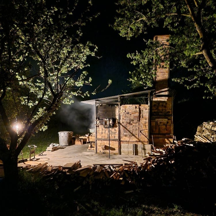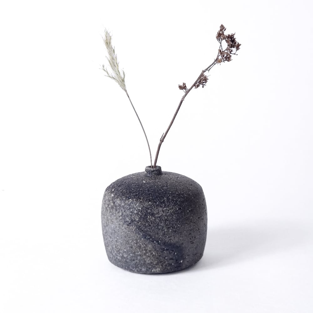 Soliflore en grès, émaillé naturellement par les cendres du bois lors d'une cuisson au four à bois. Année de cuisson: 2025.